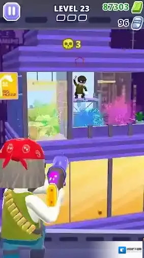 1、射杀身后无尽的追捕者,帮助人质逃脱。使用炸药和其他游戏内物品消灭多个敌人,或依靠精妙的射击尽可能多地消灭坏人。向敌人发起猛烈攻击,但务必注意不要误伤人质。