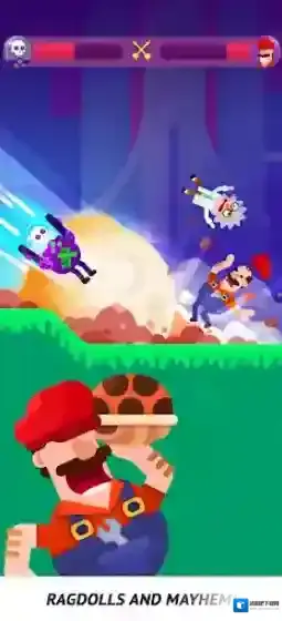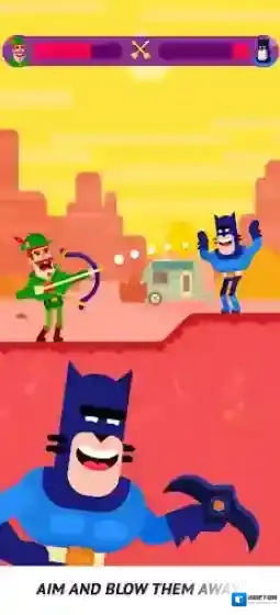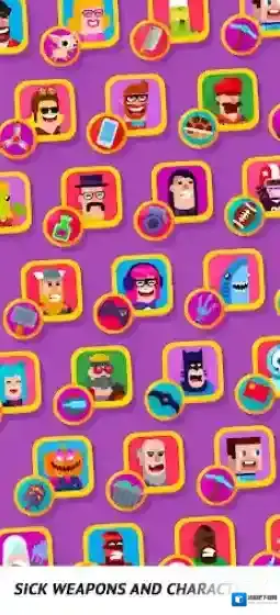 游戏中,我们需要通过拖动屏幕来控制角色投掷的角度和力度,瞄准好敌人进行射击,利用角色独特的武器去击中对手,造成不俗的伤害!不断的去消灭对手来赢下比赛,获得丰富的奖励,解锁更多有意思的角色和模式,体验更加丰富的内容!